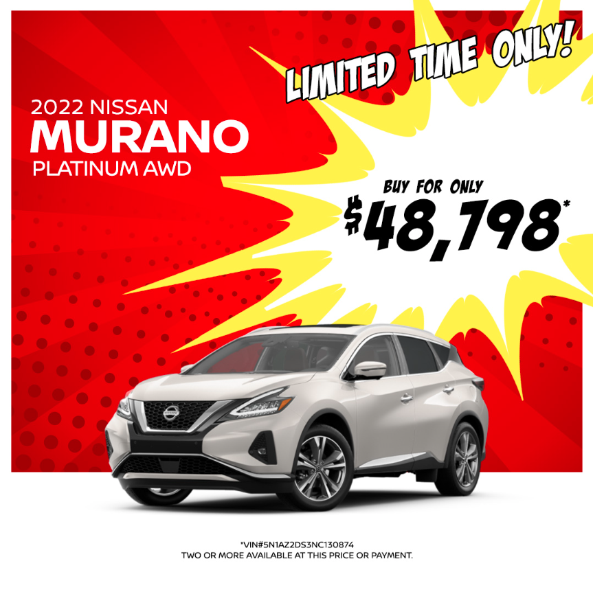 With room for up to five passengers and cargo space to take all your accessories, this spacious SUV sure is special! And from now until the end of September you can get the incredible 2022 Nissan Murano for a very special price! So, check out Younger Nissan’s monthly offer below and schedule your test drive at our dealership in Frederick, MD! Our team of dedicated and friendly professionals can’t wait to help you get behind the wheel of this exceptional ride today!
