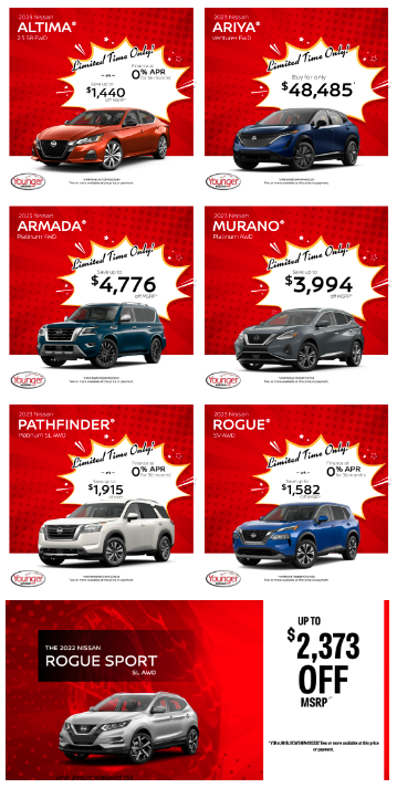 February has arrived! Are you ready to fall in love? Then you should take a look at Younger Nissan’s monthly specials on select Nissan models! Whether you’re looking for an amazing Altima, or a reliable Rogue, or a powerful Pathfinder, we’ve got offers for you! Check out our offers below and when you find the right one for your needs, be sure to schedule your test drive here at 7418 Grove Road, Frederick, MD 21704, today!