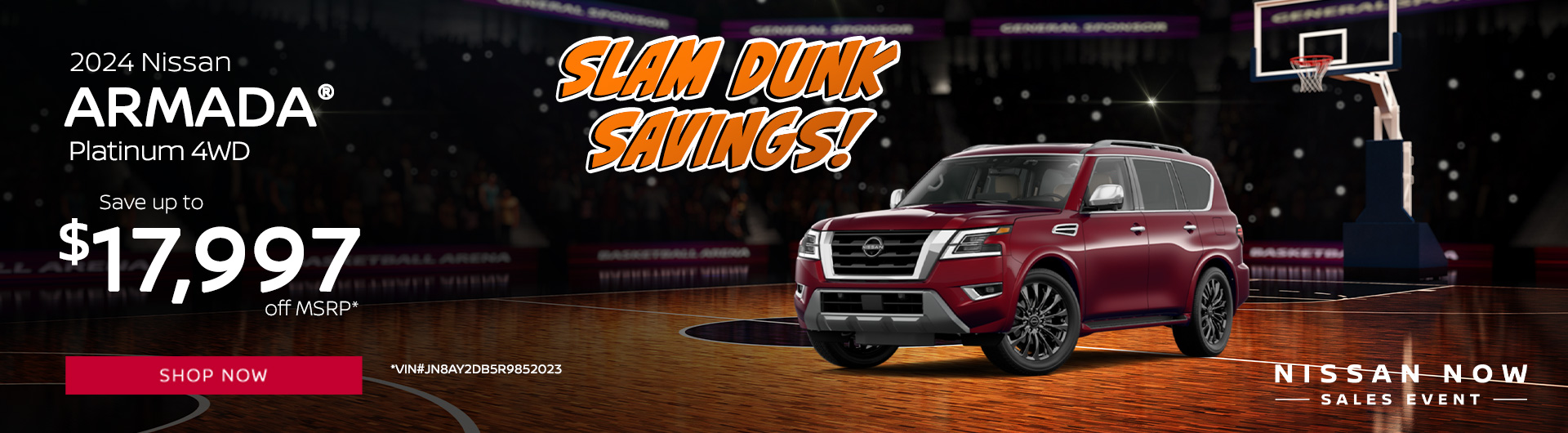 *2024 Nissan Armada Platinum 4WD $75,750 MSRP. Model Code 26614. VIN JN8AY2DB5R9852023. Stock#240202. 8 cylinder engine, 7-Speed Automatic transmission, 4D Sport Utility. *Discounted price based on all available rebates and dealer discounts, including $7,000 my24 dealer cash. Some restrictions and qualifying criteria apply. Not all will qualify. Must take delivery from retail stock. Prior sales excluded. Offer subject to change. Dealership prices exclude taxes, title, license, freight and dealer processing fee of $799.00. We provide Savings on our vehicles daily based on current inventory supply. Price quoted is subject to market area. Check to see if this vehicle qualifies for a further reduced Sale Price. Offer expires on 03/31/2025.