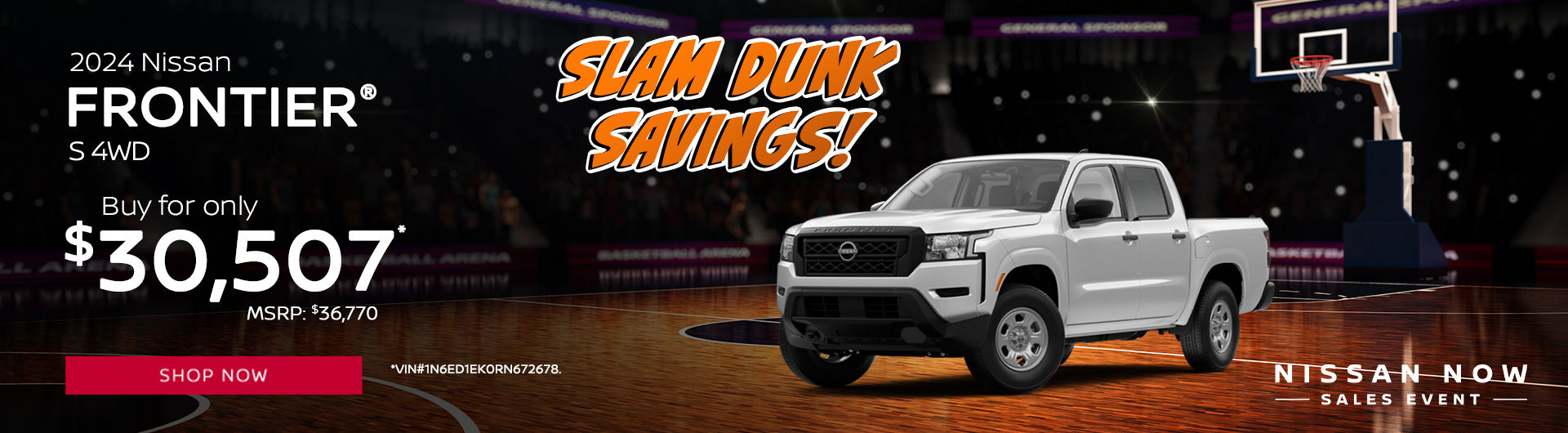 *2024 Nissan Frontier S 4WD $36,770 MSRP. Model Code 32014. VIN 1N6ED1EK0RN672678. Stock#240476. 6 cylinder engine, 9-Speed Automatic with Overdrive transmission, 4D Crew Cab. *Low sale price offer based on all available rebates and dealer discounts, including $3,000 MY24 DEALER CASH. Some restrictions and qualifying criteria apply. Not all will qualify. Must take delivery from retail stock. Prior sales excluded. Offer subject to change. Dealership prices exclude taxes, title, license, freight and dealer processing fee of $799.00. We provide Savings on our vehicles daily based on current inventory supply. Price quoted is subject to market area. Check to see if this vehicle qualifies for a further reduced Sale Price. Offer expires on 03/31/2025.