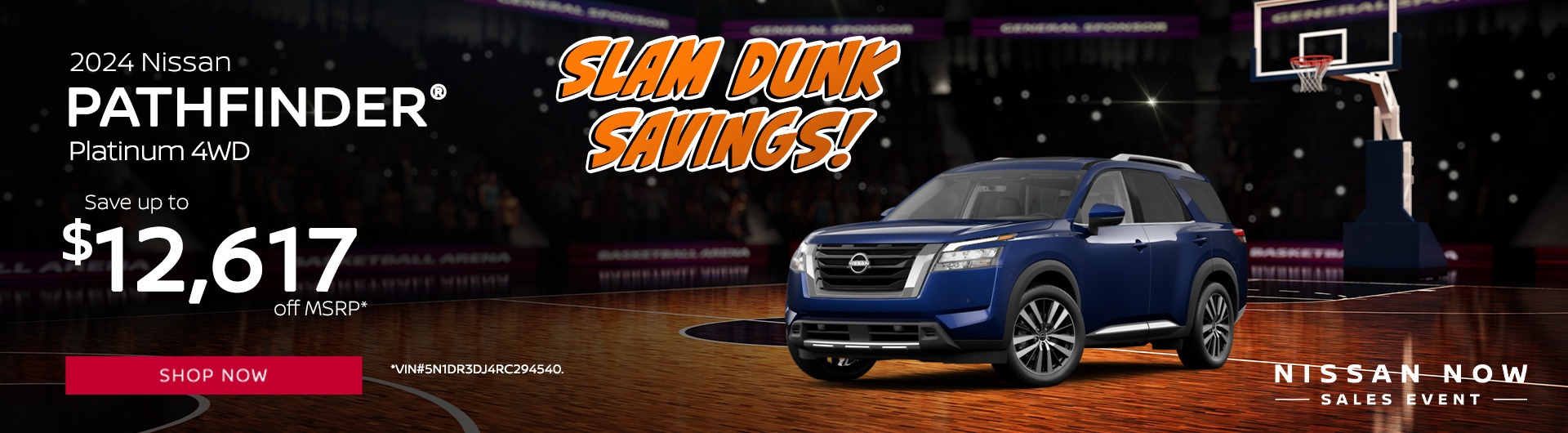 *2024 Nissan Pathfinder Platinum 4WD $54,300 MSRP. Model Code 25814. VIN 5N1DR3DJ4RC294540. Stock#240457. 6 cylinder engine, 9-Speed Automatic transmission, 4D Sport Utility. *Discounted price based on all available rebates and dealer discounts, including $5,500 non special rate dealer cash. Some restrictions and qualifying criteria apply. Not all will qualify. Must take delivery from retail stock. Prior sales excluded. Offer subject to change. Dealership prices exclude taxes, title, license, freight and dealer processing fee of $799.00. We provide Savings on our vehicles daily based on current inventory supply. Price quoted is subject to market area. Check to see if this vehicle qualifies for a further reduced Sale Price. Offer expires on 03/31/2025.