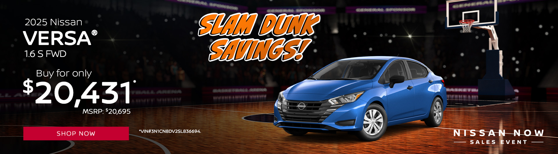 *2025 Nissan Versa 1.6 SV FWD $22,720 MSRP. Model Code 10215. VIN 3N1CN8EV1SL822333. Stock#250154. 4 cylinder engine, CVT transmission, 4D Sedan. Not all will qualify. Must take delivery from retail stock. Prior sales excluded. Offer subject to change. Dealership prices exclude taxes, title, license, freight and dealer processing fee of $799.00. We provide Savings on our vehicles daily based on current inventory supply. Price quoted is subject to market area. Check to see if this vehicle qualifies for a further reduced Sale Price. Offer expires on 03/31/2025.