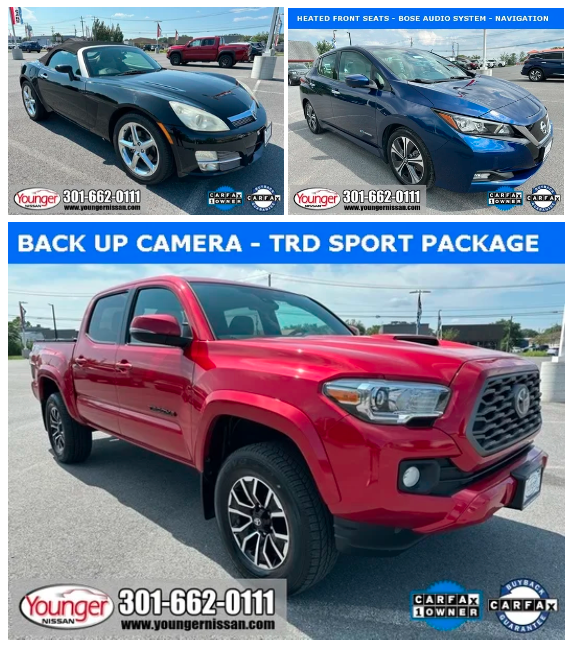 As the leaves start to turn and the air gets crisper, it’s time to cozy up to a fantastic deal on a pre-owned car at Younger Nissan Of Frederick. We understand the importance of having reliable transportation around the Frederick, Germantown, Rockville, and Hagerstown, MD areas, and we’re excited to offer some special savings on select used cars. Check out our September Pre-Owned Specials below, find the right ride for you, and be sure to stop into our dealership at 7418 Grove Road, Frederick, MD 21704, for a test drive today!Â