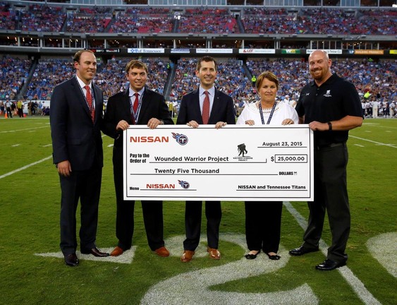 This summer the Nissan brand entered into two major partnerships. The first had the brand being named the official automotive partner of the Wounded Warrior Project ® (WWP) and through the second, Nissan signed a new 20-year exclusive Naming Rights agreement with the downtown stadium of the Tennessee Titans. Now, the brand has combined the two through a series of special dedication ceremonies that will take place during all of the Tennessee Titan home games this season along with a recent donation of $25,000 made by the team to WWP.
