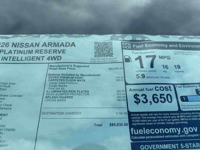 2026 Nissan Armada Platinum Reserve 4D Sport Utility Everest White Pearl Tricoat