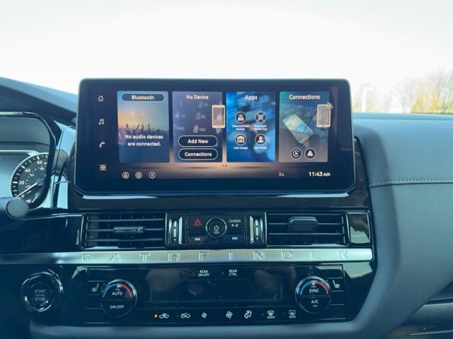 - Radio: AM/FM Audio System w/NissanConnect -inc: 6 speakers, 5G Wi-Fi hotspot, wireless Apple CarPlay and Android Auto, 12.3" center touch-screen display, SiriusXM satellite radio, 2 front USB connection (1 type C charge and data ports), Bluetooth® hands-free phone system, streaming audio and messaging and hands-free text messaging assistant