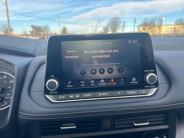 - Radio: AM/FM NissanConnect -inc: 6 speakers plus 2 tweeters, Apple CarPlay, Android Auto, 8" color touch screen display, Bluetooth®, 2 front USB type-C, Wi-Fi hotspot and NissanConnect Services powered by SiriusXM